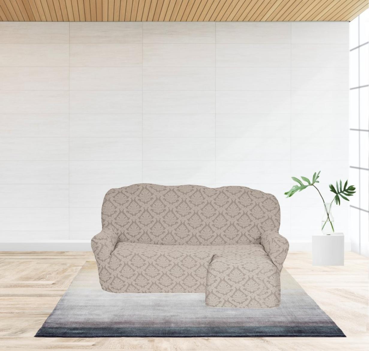 Чехол на угловой диван Karteks "Классика" с оттоманкой KAR 012-10 (правый), натуральный