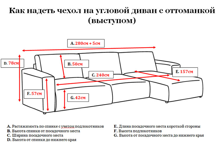 - Ширина спинки дивана с учётом подлокотников: 280+5 см