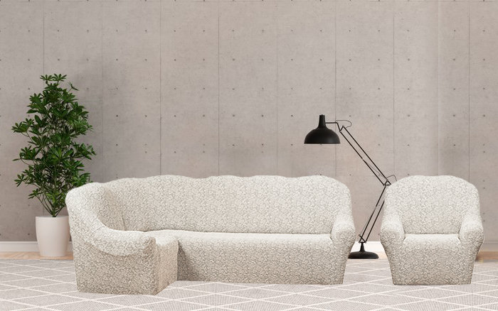 Комплект чехлов на 3-х местный угловой диван и кресло Karteks "Классика" KAR 002-02, кремовый
