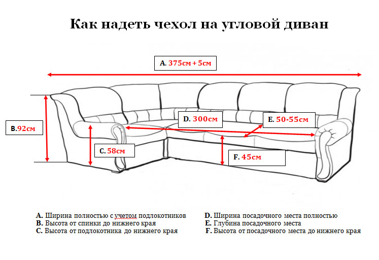 - Ширина спинки дивана (кресла) с учётом подлокотников: 375+5 см (100 см)