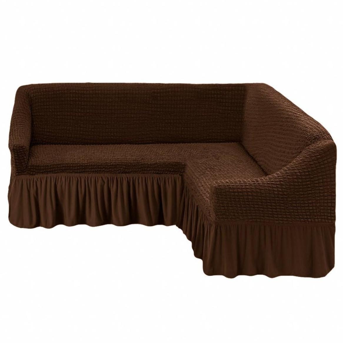 Чехол для мягкой мебели "KARTEKS" с оборкой на угловой диван с полочкой (правый), 201 Шоколадный