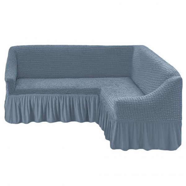 Чехол для мягкой мебели "KARTEKS" с оборкой на угловой диван с полочкой (правый), 216 Серый