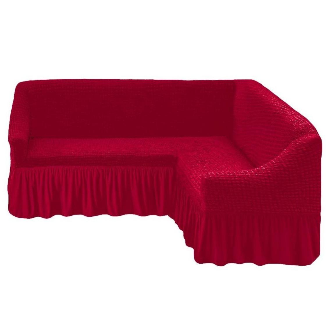 Чехол для мягкой мебели "KARTEKS" с оборкой на угловой диван с полочкой (правый), 221 Бордовый