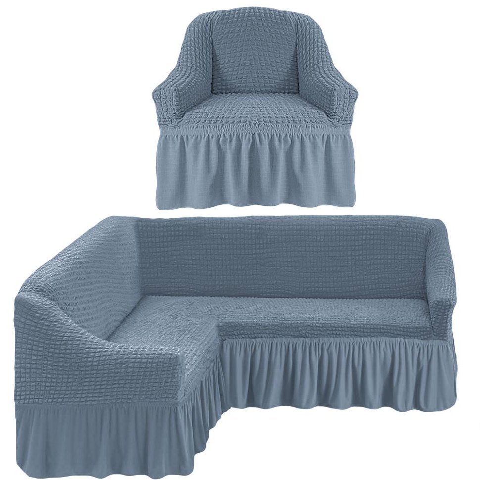 Комплект чехлов для мягкой мебели "KARTEKS" на угловой диван с полочкой (левый) и креслом, 216 Серый