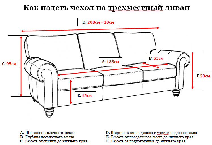 - Высота от подлокотника до нижнего края ((Трехместный): 59 см