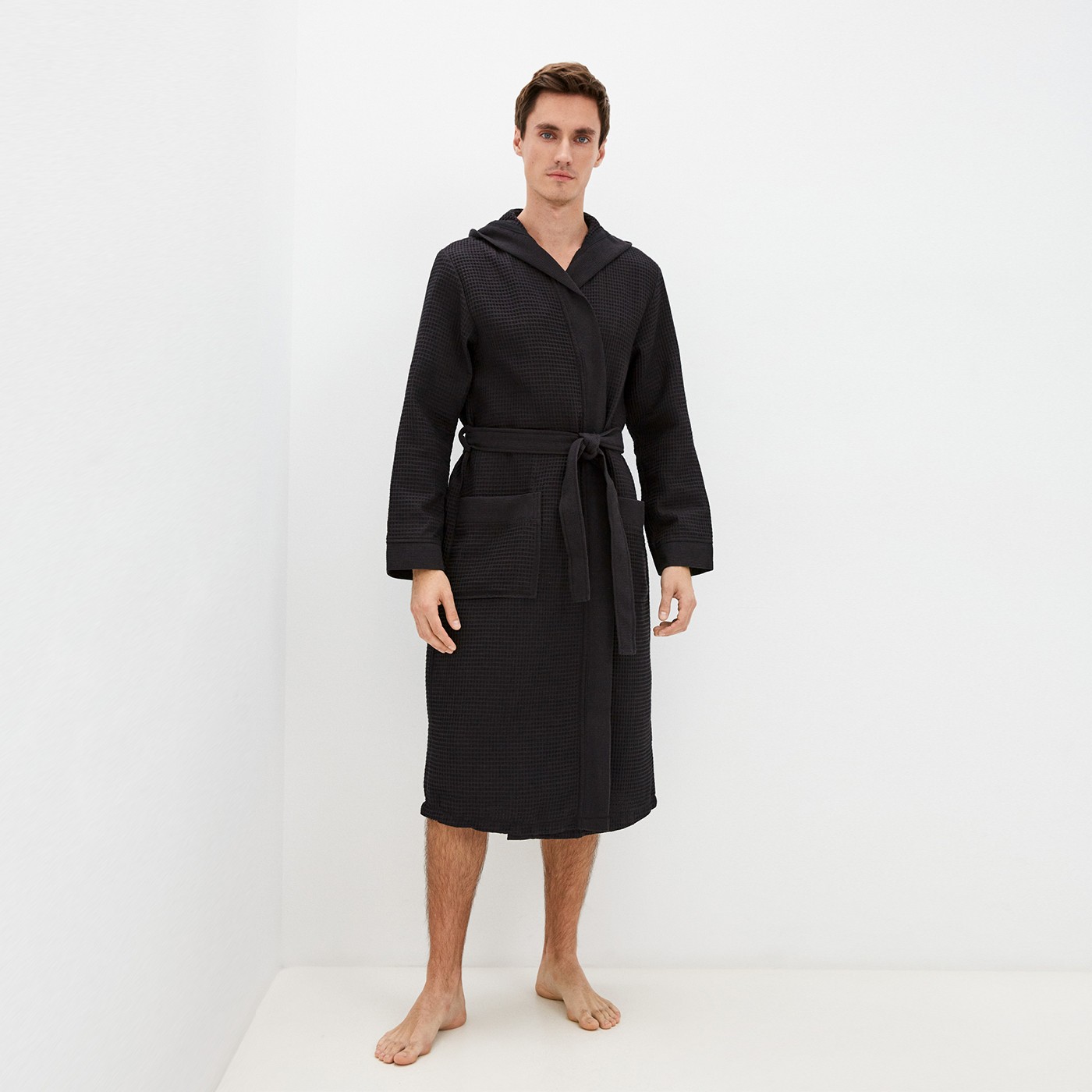 Мужской халат вафельный с капюшоном "Sofi de Marko" Гамлет (черный), S