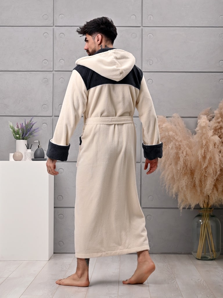Халат мужской трига с капюшоном "AMBIELLA A-1130" кремовый, 2XL
