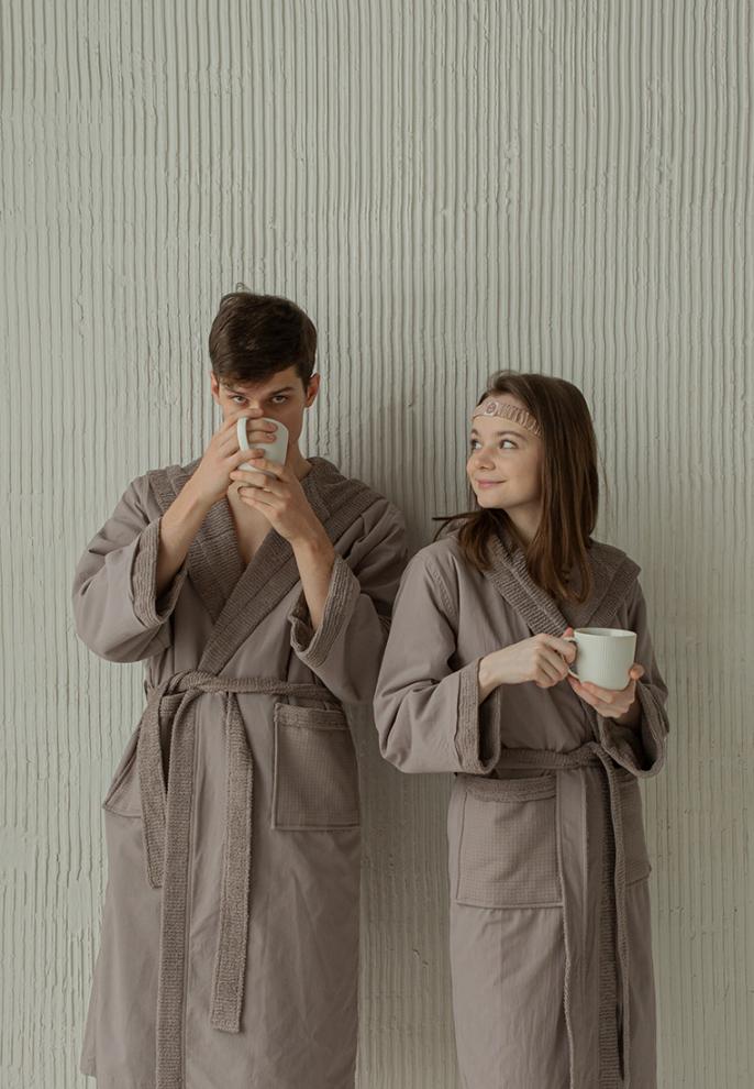Халат с капюшоном серии "COZY HOME" пошит из 100% узбекского хлопка в следующей комбинации тканей: