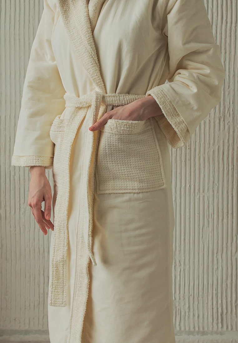 Халат с капюшоном серии "COZY HOME" пошит из 100% узбекского хлопка в следующей комбинации тканей:
