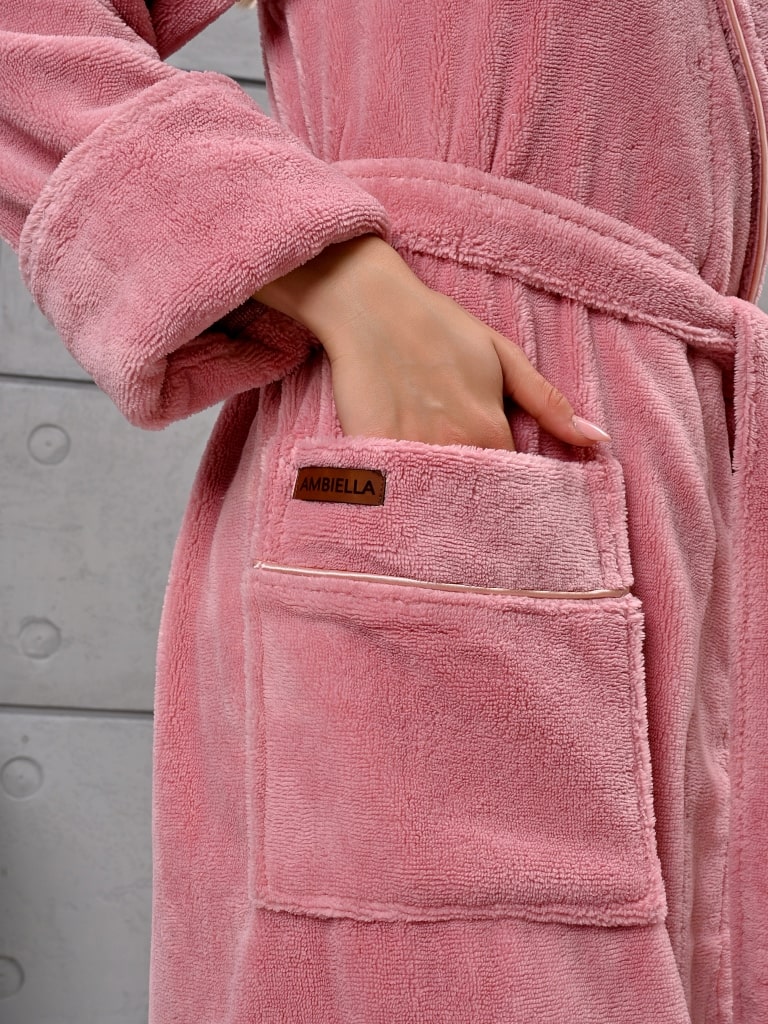 Халат женский трига с капюшоном "AMBIELLA A-1215" пудра, S/M