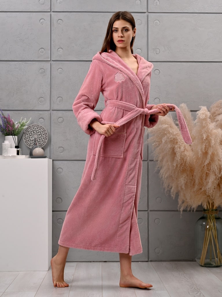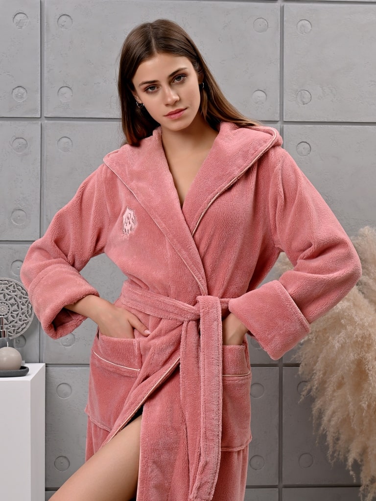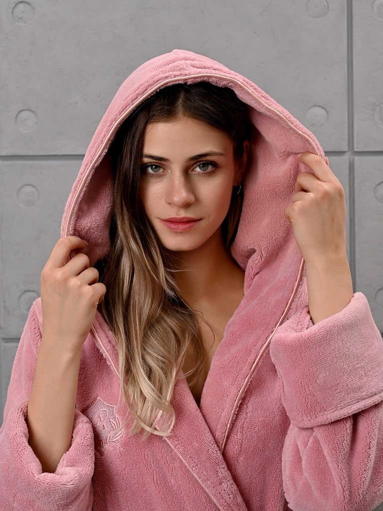 Халат женский трига с капюшоном "AMBIELLA A-1215" пудра, 2XL
