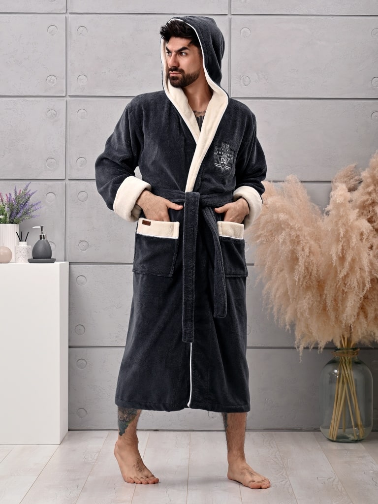 Халат мужской трига с капюшоном "AMBIELLA A-1125" антрацит, L/ХL