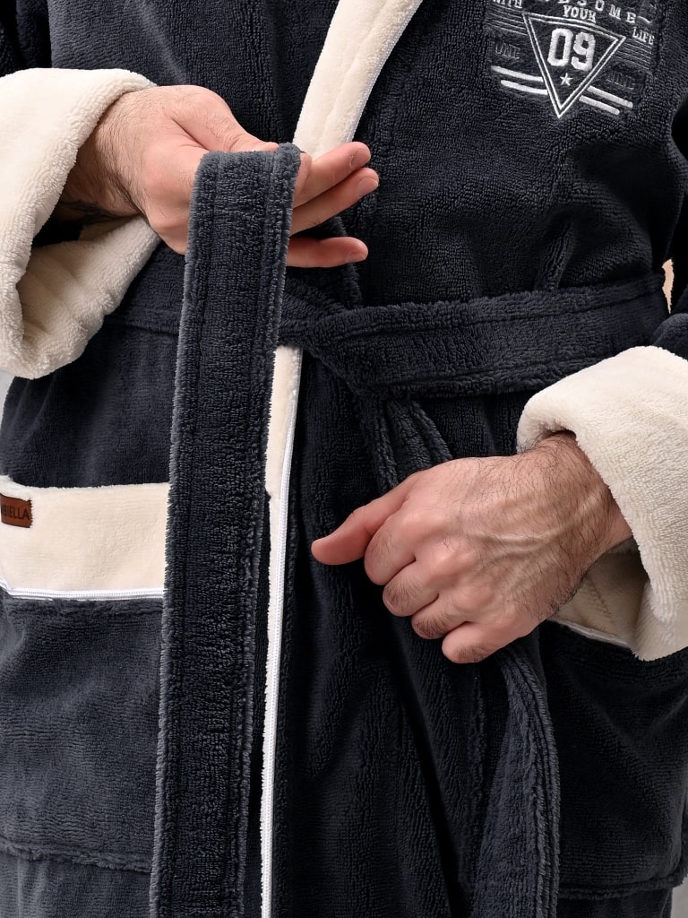 При изготовлении мужского халата данной серии торговой марки "Ambiella" используется ткань, выполненная по технологии трига-бамбук: