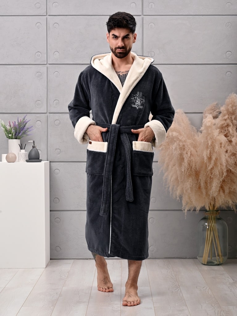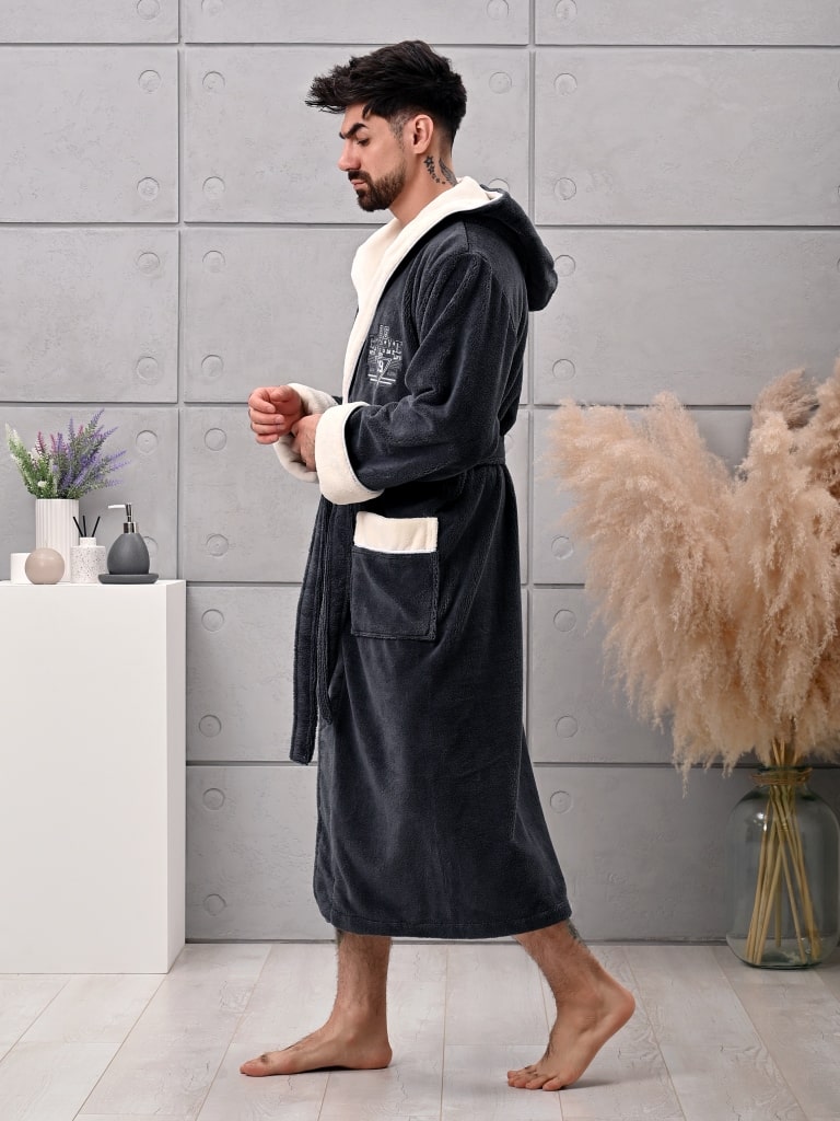 Халат мужской трига с капюшоном "AMBIELLA A-1125" антрацит, 3XL