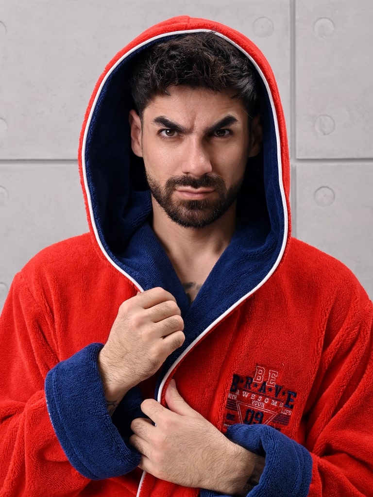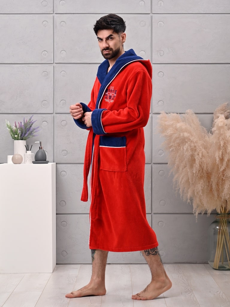 Халат мужской трига с капюшоном "AMBIELLA A-1125" красный, 3XL