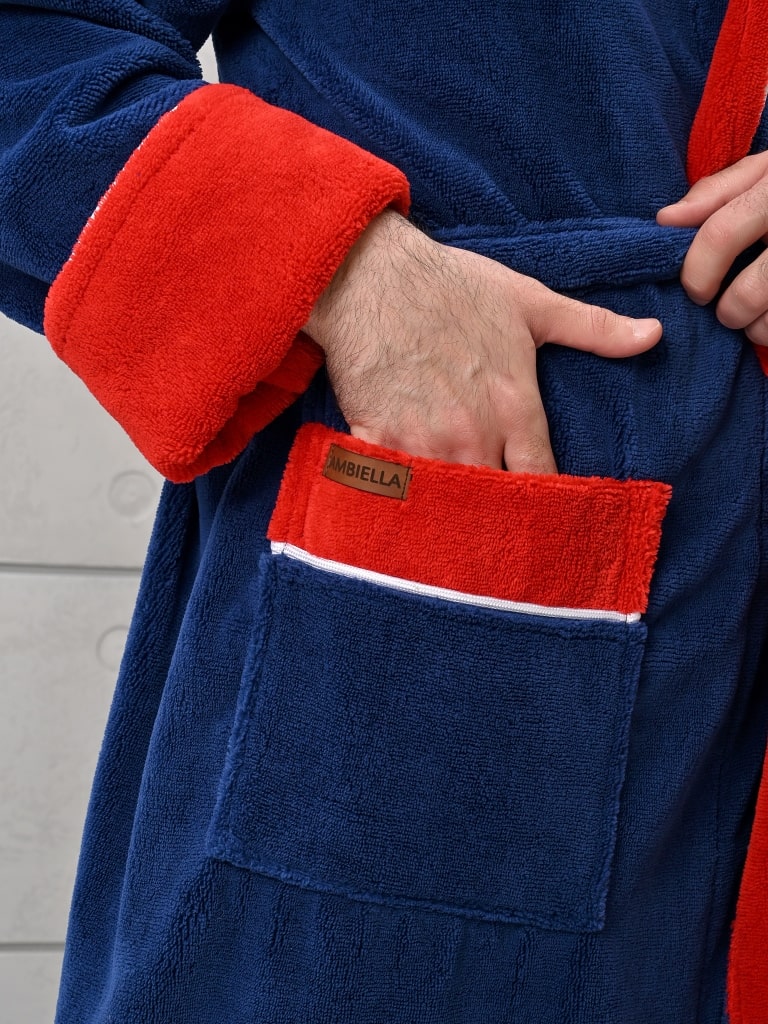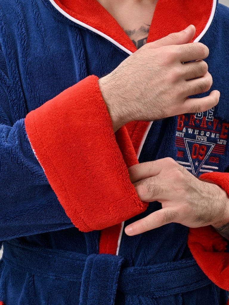 При изготовлении мужского халата данной серии торговой марки "Ambiella" используется ткань, выполненная по технологии трига-бамбук: