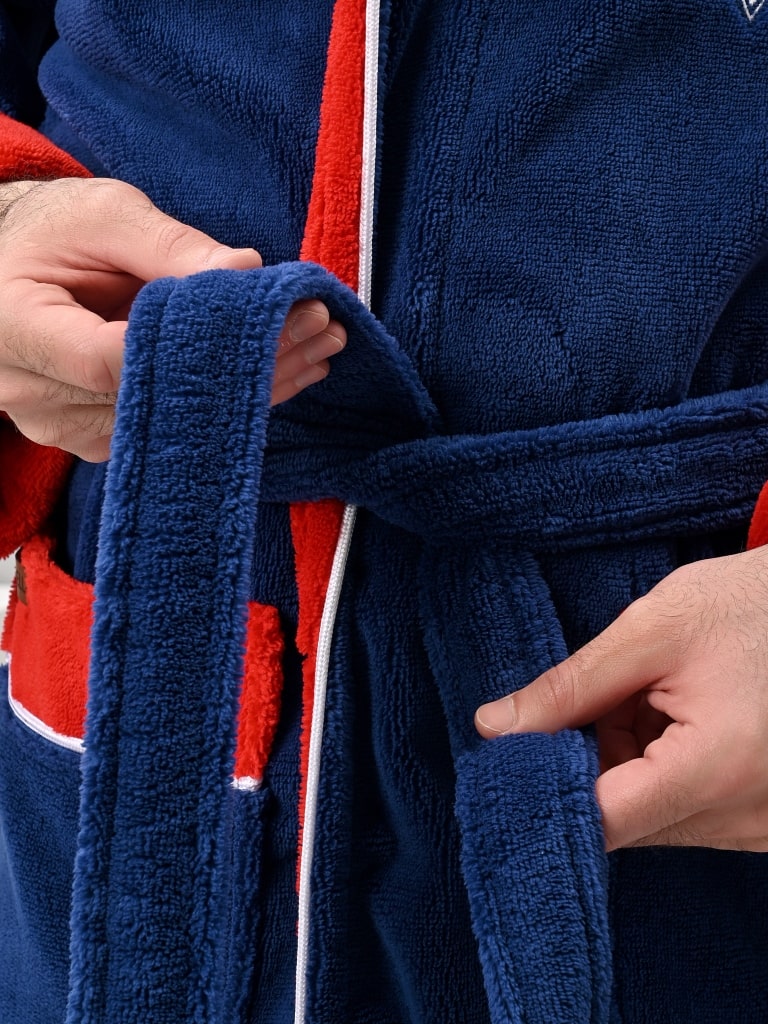 При изготовлении мужского халата данной серии торговой марки "Ambiella" используется ткань, выполненная по технологии трига-бамбук: