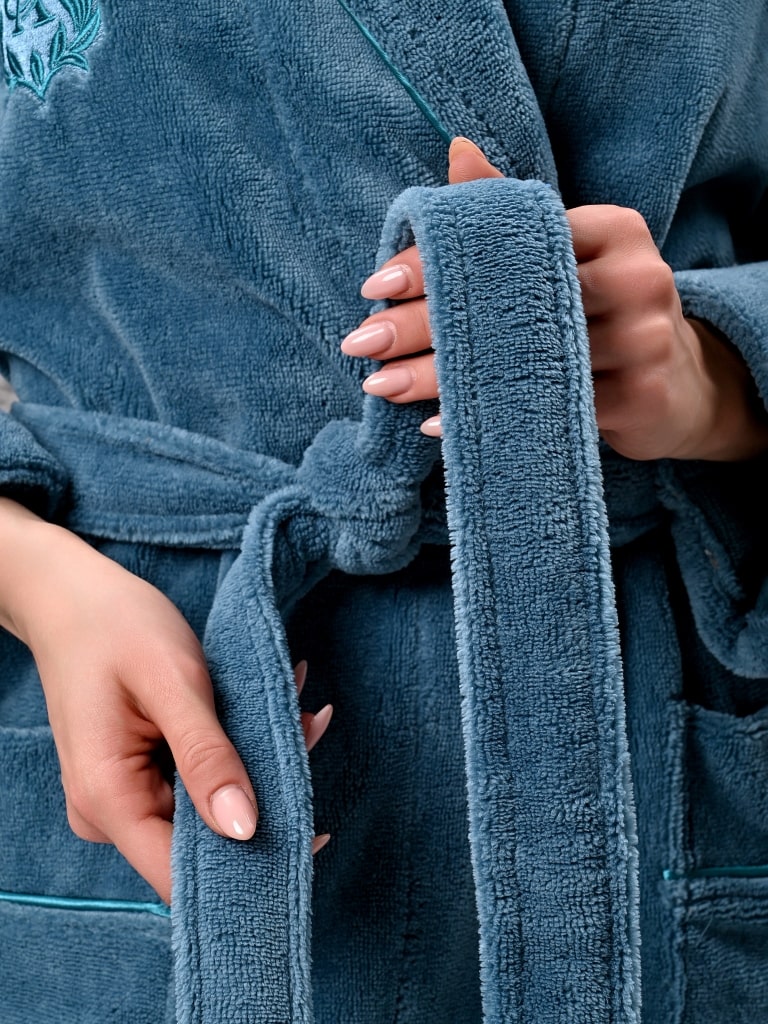 - наружная сторона халата велюровая из микрофибры (100% полиэстер);