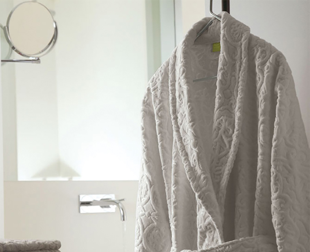 При изготовлении халата серии "Princess" торговой марки "Blanc des Vosges" используется велюровая ткань из 100% длинноволокнистого хлопка.