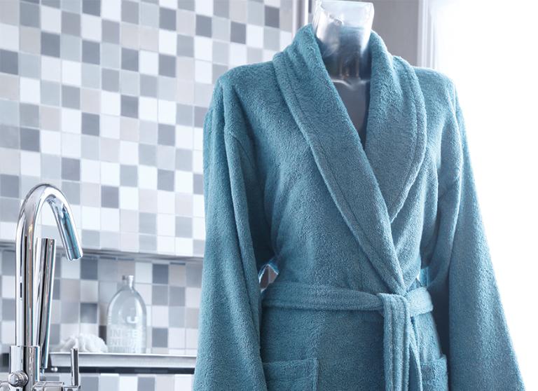 При изготовлении халата серии "UNI" торговой марки "Blanc des Vosges" используется махровая ткань из 100% длинноволокнистого хлопка.
