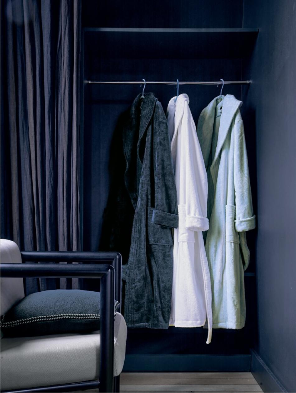 При изготовлении халата серии "Quietude" торговой марки "Blanc des Vosges" используется двусторонняя ткань из 100% длинноволокнистого египетского хлопка: