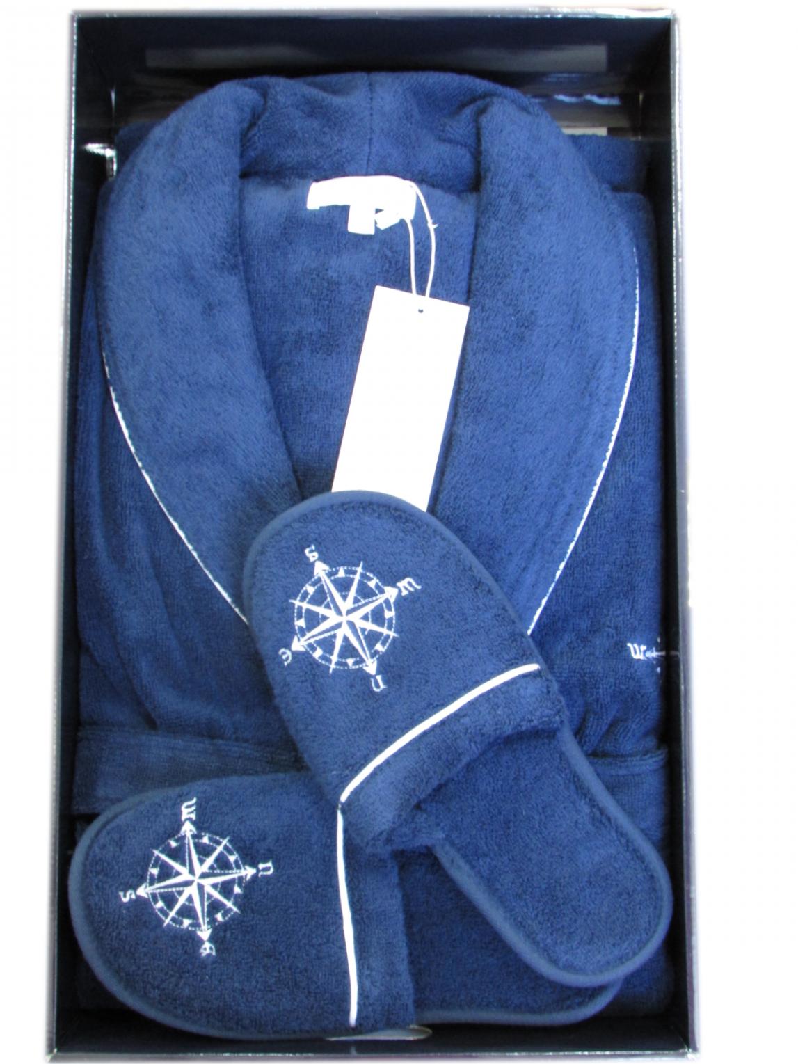 Халат мужской махровый Maison D'or "MARINE CLUB" синий, M(46)/L(48)