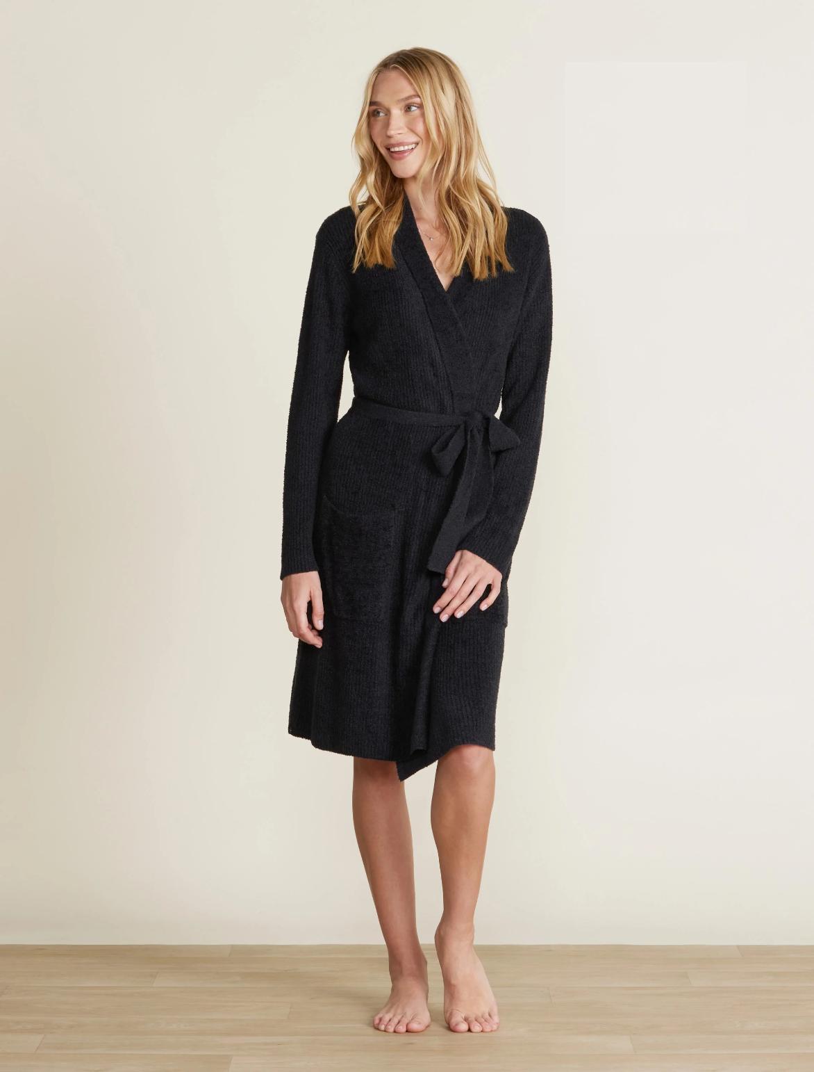 Халат трикотажный "Barefoot Dreams" CCL RIBBED ROBE, 9черный), M