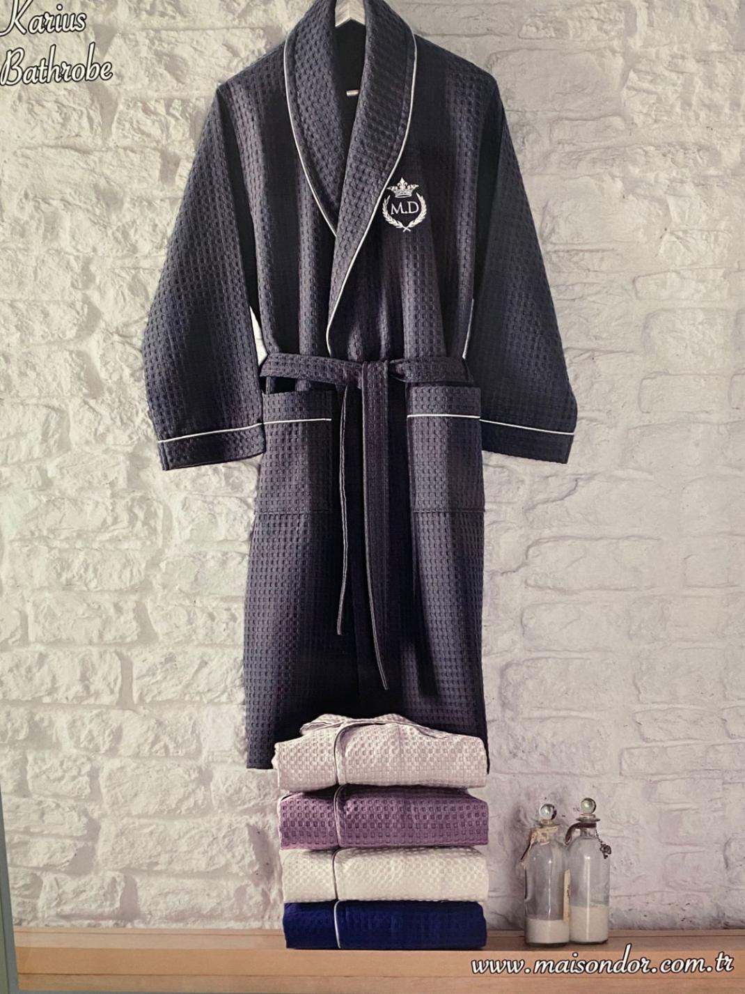 При изготовлении халата серии "KARIUS" торговой марки "Maison D'or" используется вафельная ткань на основе волокон хлопка, что обеспечивает изделию экологичность, гипоаллергенность, оптимальное сочетание мягкости и прочности, гигроскопичности и воздухопроницаемости.