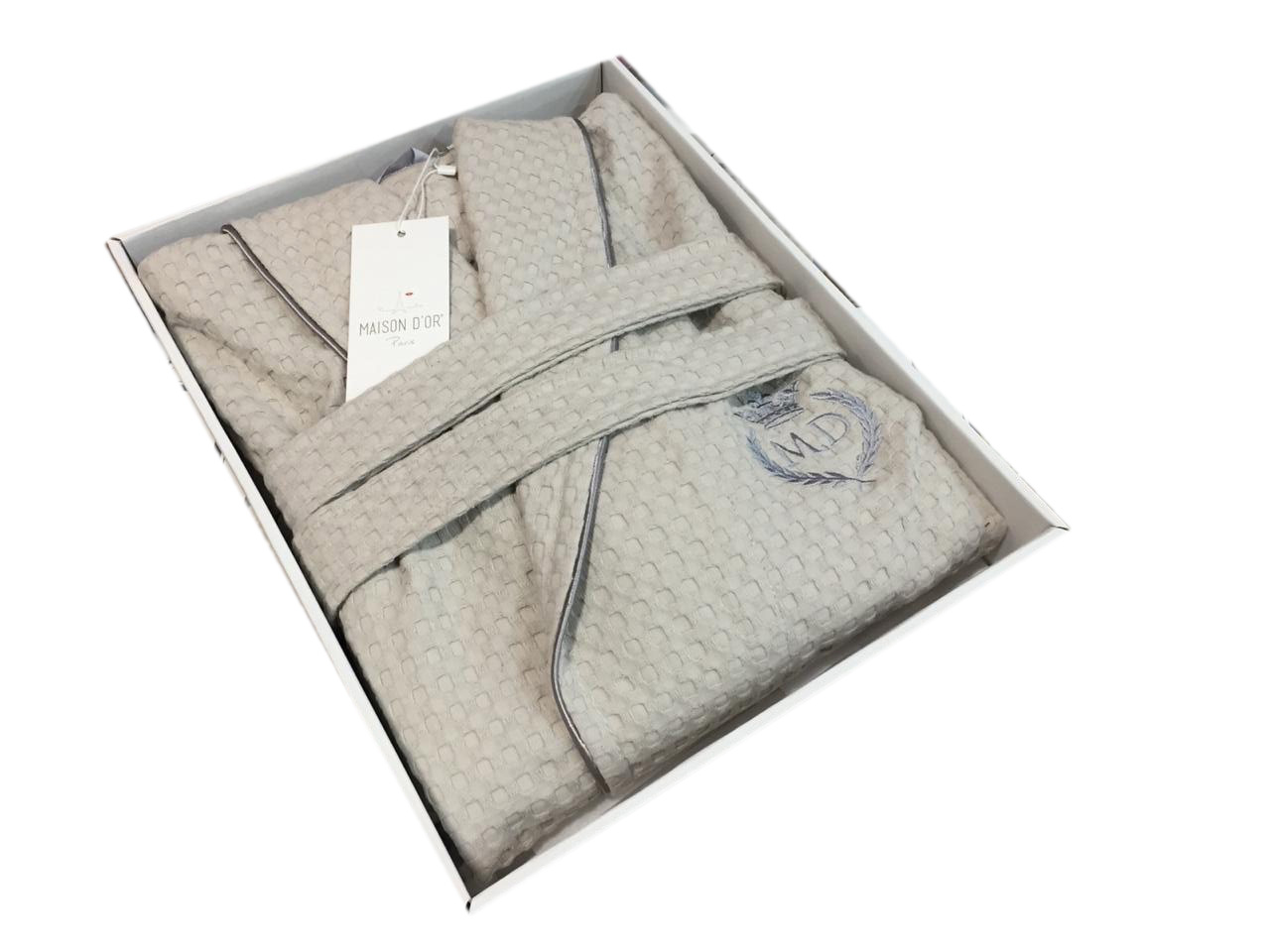 При изготовлении халата серии "KARIUS" торговой марки "Maison D'or" используется вафельная ткань на основе волокон хлопка, что обеспечивает изделию экологичность, гипоаллергенность, оптимальное сочетание мягкости и прочности, гигроскопичности и воздухопроницаемости.