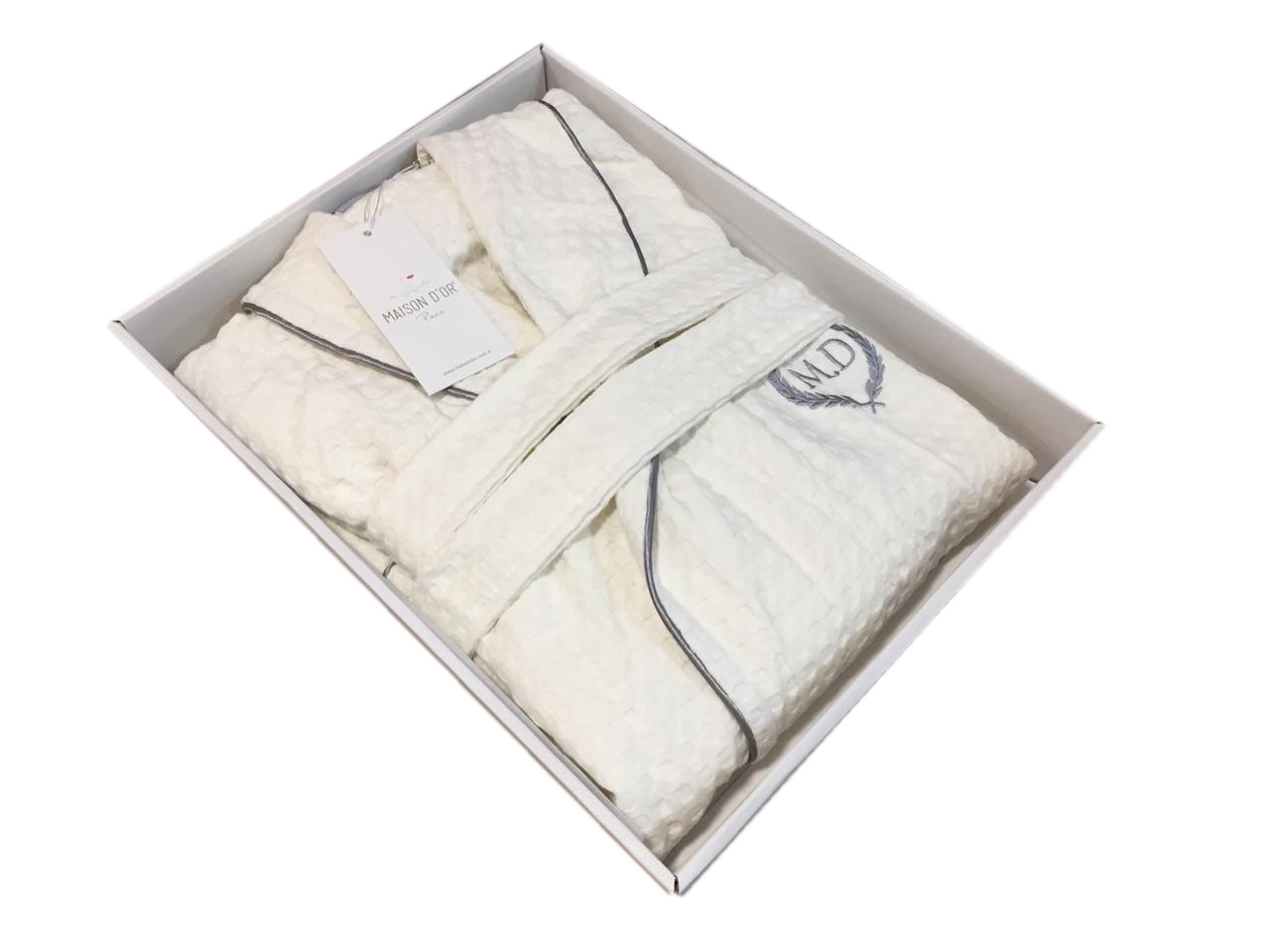 При изготовлении халата серии "KARIUS" торговой марки "Maison D'or" используется вафельная ткань на основе волокон хлопка, что обеспечивает изделию экологичность, гипоаллергенность, оптимальное сочетание мягкости и прочности, гигроскопичности и воздухопроницаемости.