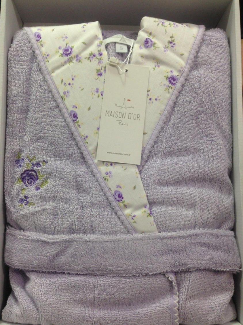 Халат женский махровый Maison D'or "ROSES JE ACIX" сиреневый, M(46)-l(48)