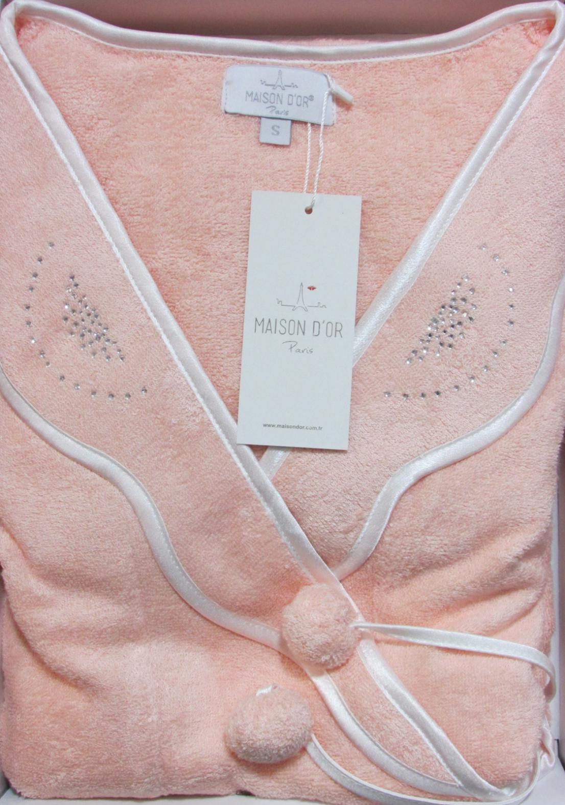 Халат женский махровый Maison D'or "SANDRA" (персиковый) со стразами, XS(42)-S(44)