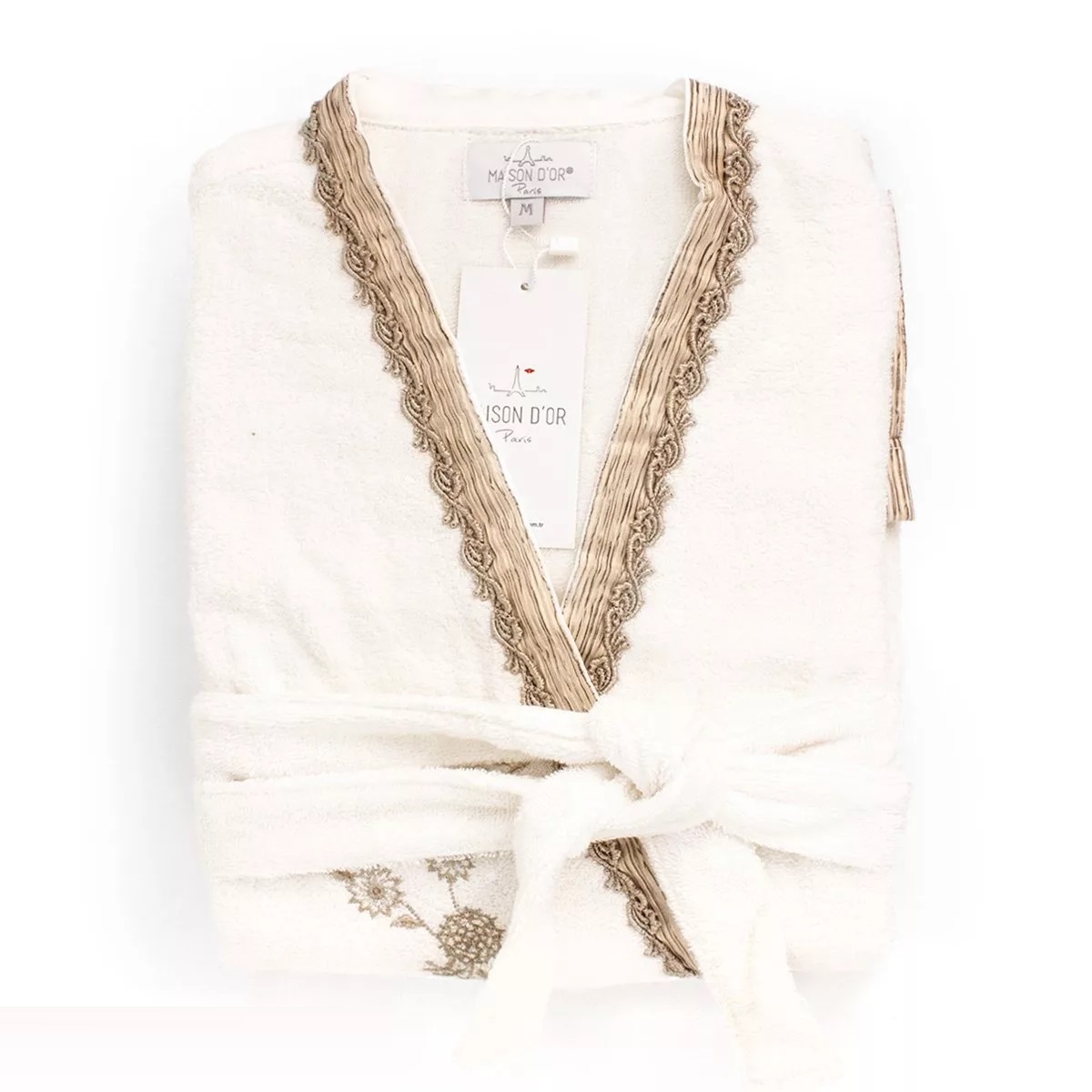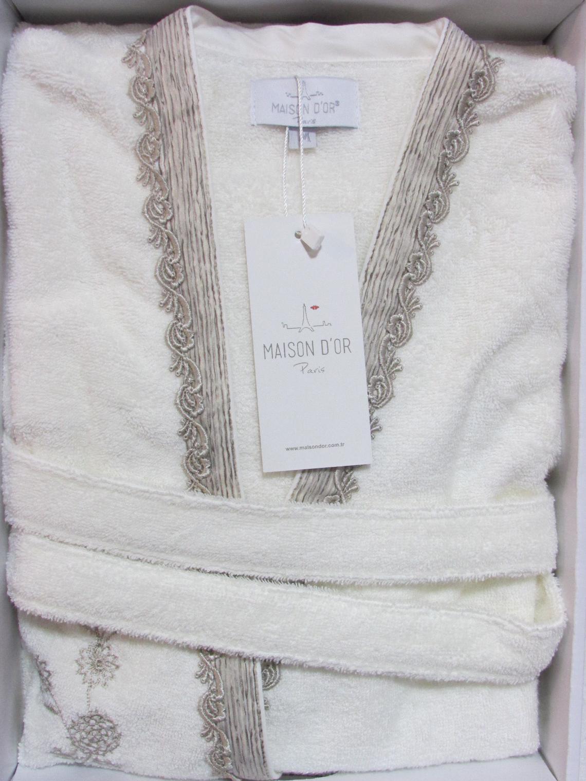 Халат женский махровый с вышивкой Maison D'or "SIDNEY" (кремовый), XS(42)-S(44)