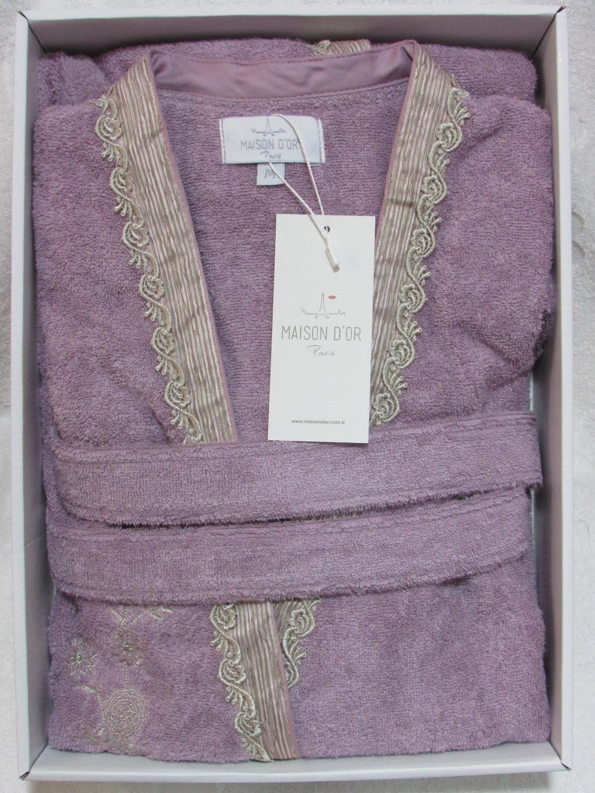 Халат женский махровый с вышивкой Maison D'or "SIDNEY" (фиолетовый), XL(50)-XXL(52)