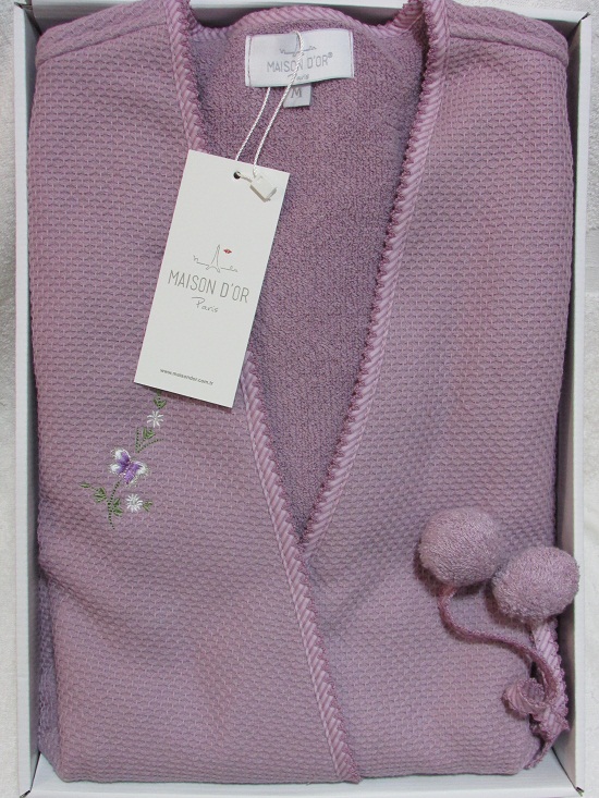 Халат женский махровый с вышивкой Maison D'or "ADELYNN" (фиолетовый), XS(42)-S(44)