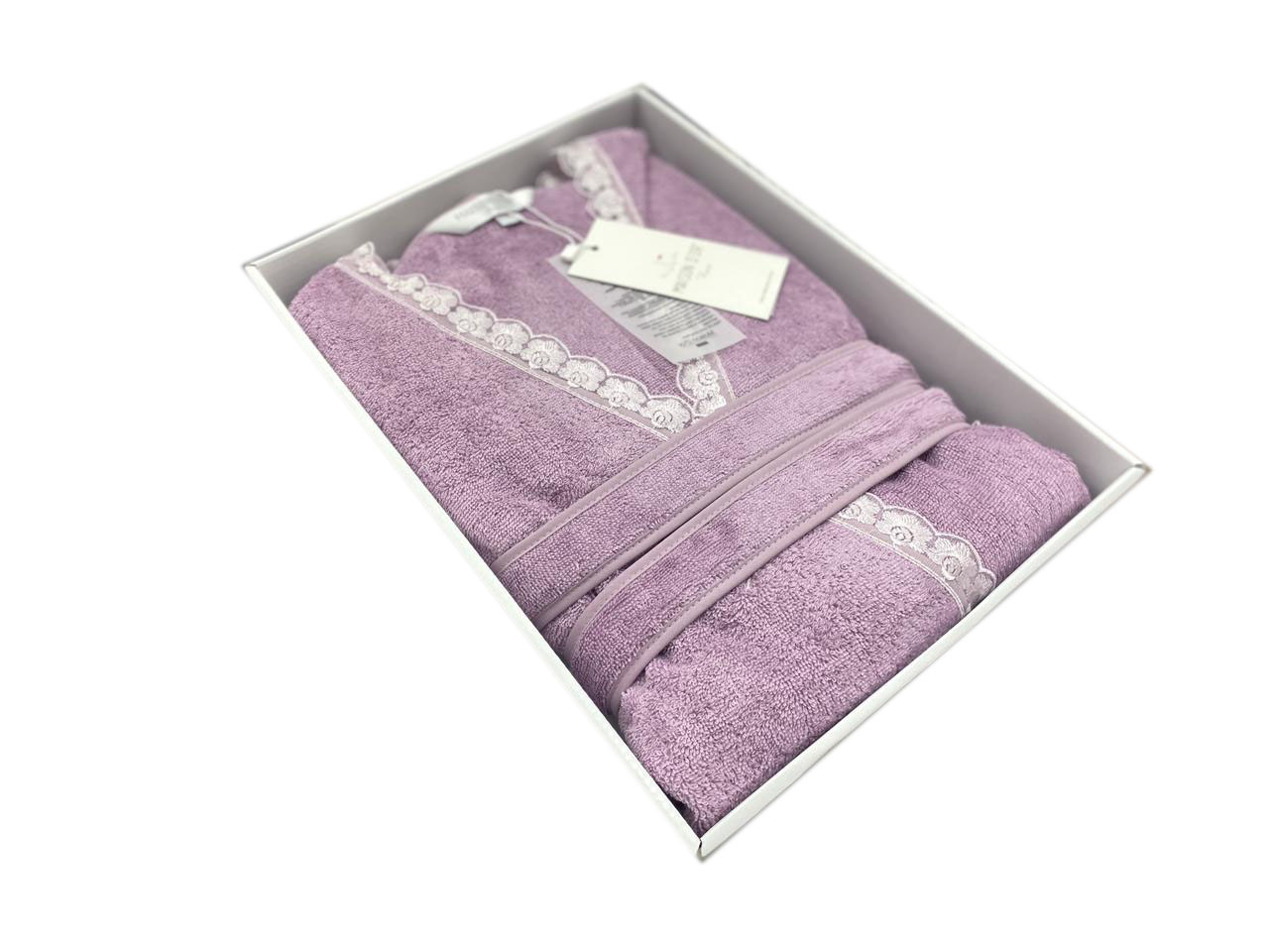 Халат женский махровый с кружевом Maison D'or "CELYN" (фиолетовый), XL(50)-XXL(52)