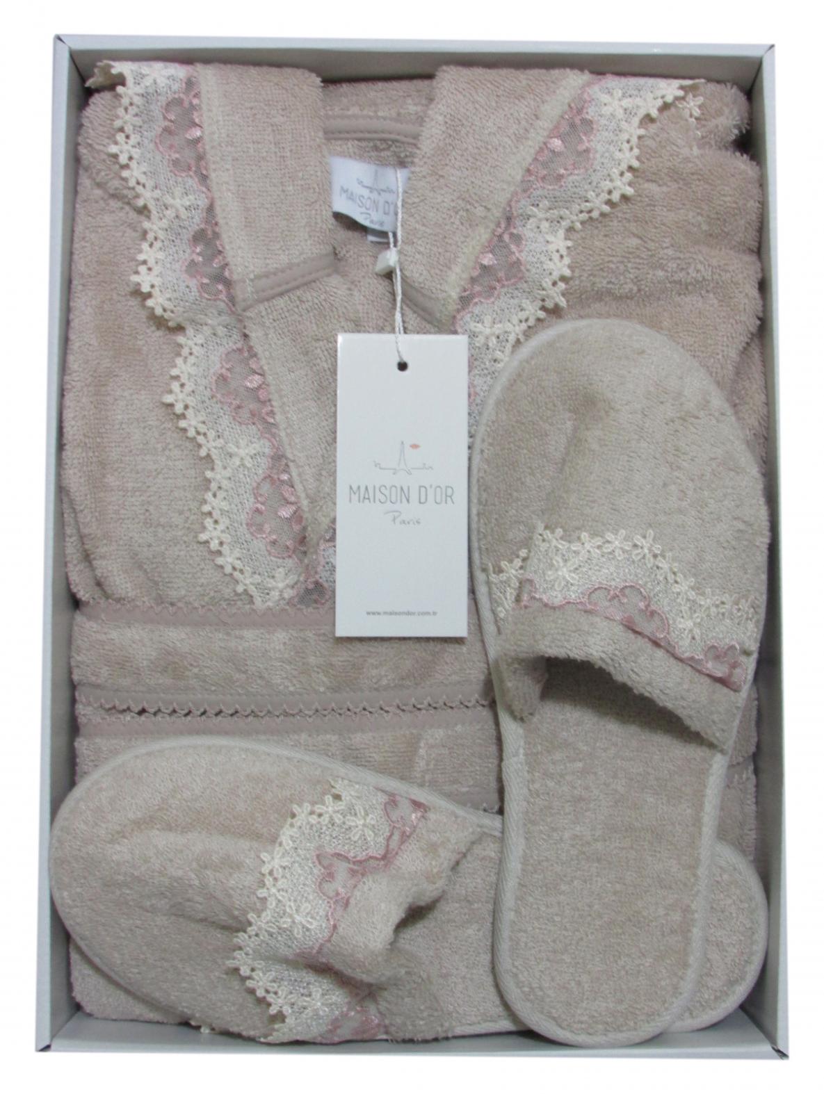 Халат женский махровый с тапочками Maison D'or "VANESSA" (бежевый), XS(42)-S(44)