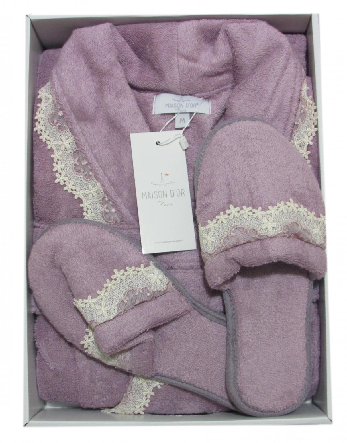Халат женский махровый с тапочками Maison D'or "VANESSA LONG" (фиолетовый), XL(50)-XXL(52)