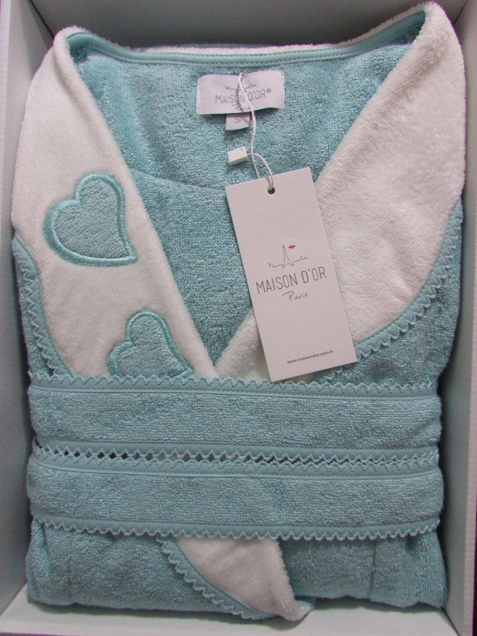 Халат женский махровый с тапочками Maison D'or "MONIQUE KALPLI" (бирюзовый), M(46)/L(48)