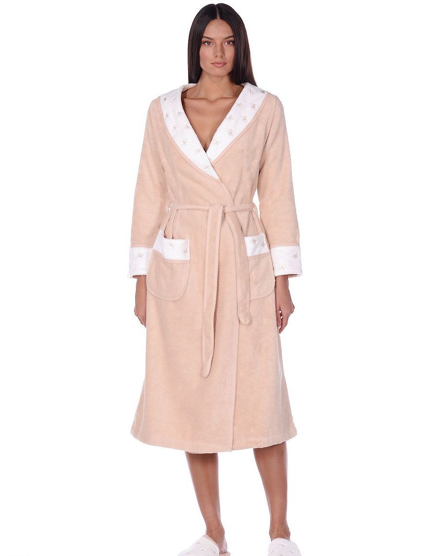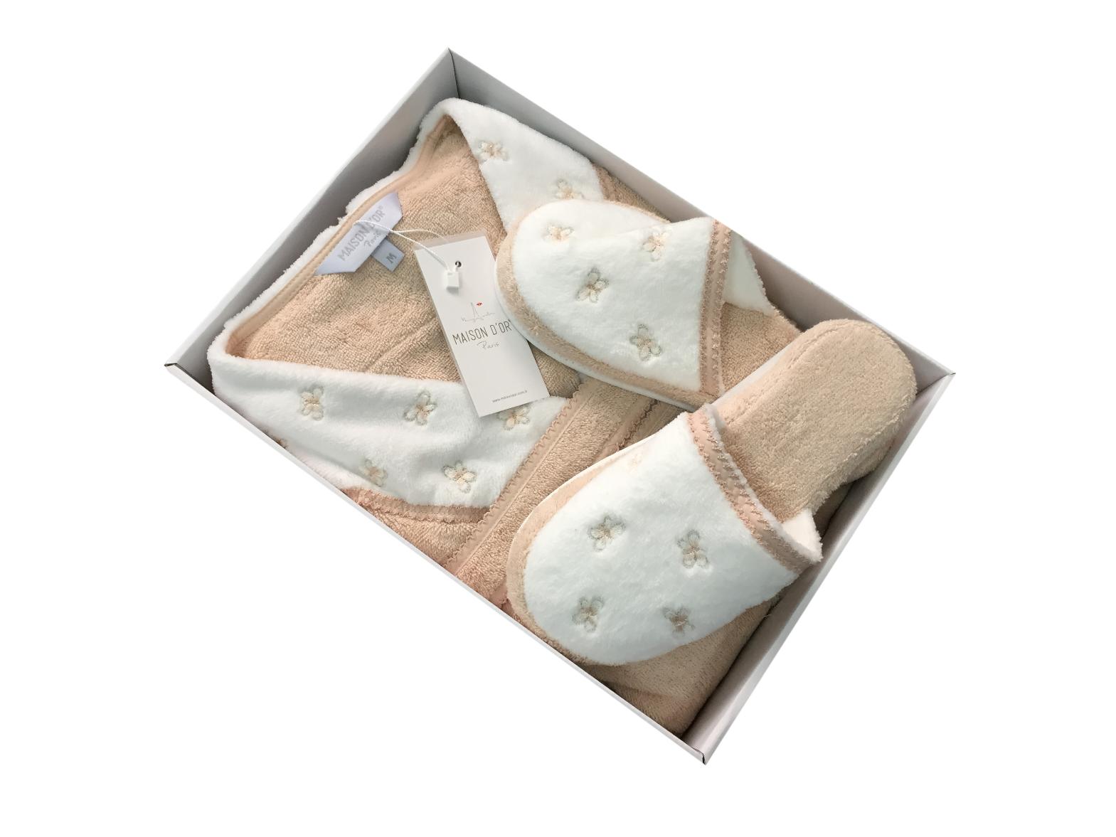 Отзывы о Халат женский махровый с тапочками Maison D'or "LAVOINE LONG BUTTEFLY" (пудра)