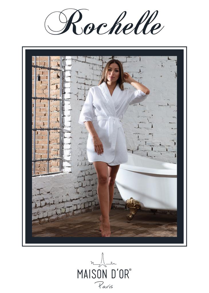 При изготовлении халата серии "ROCHELLA" торговой марки "Maison D'or" используется вафельная ткань на основе волокон хлопка, что обеспечивает изделию экологичность, гипоаллергенность, оптимальное сочетание мягкости и прочности, гигроскопичности и воздухопроницаемости.