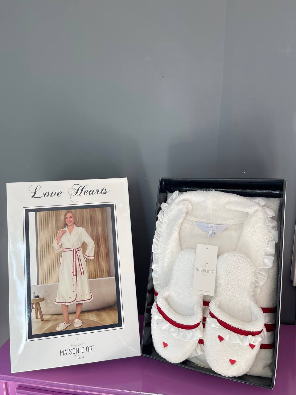 Отзывы о Халат женский махровый с тапочками Maison D'or "LOVE HEARTS LONG" (кремовый)