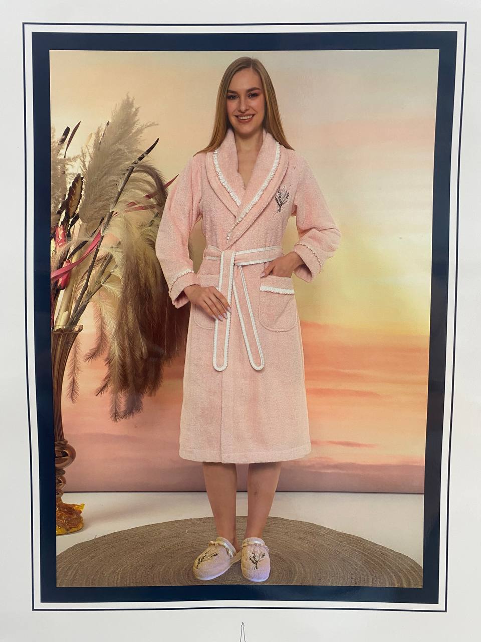 Отзывы о Халат женский махровый с вышивкой Maison D'or "LENA VOLANT" (пыльная роза)