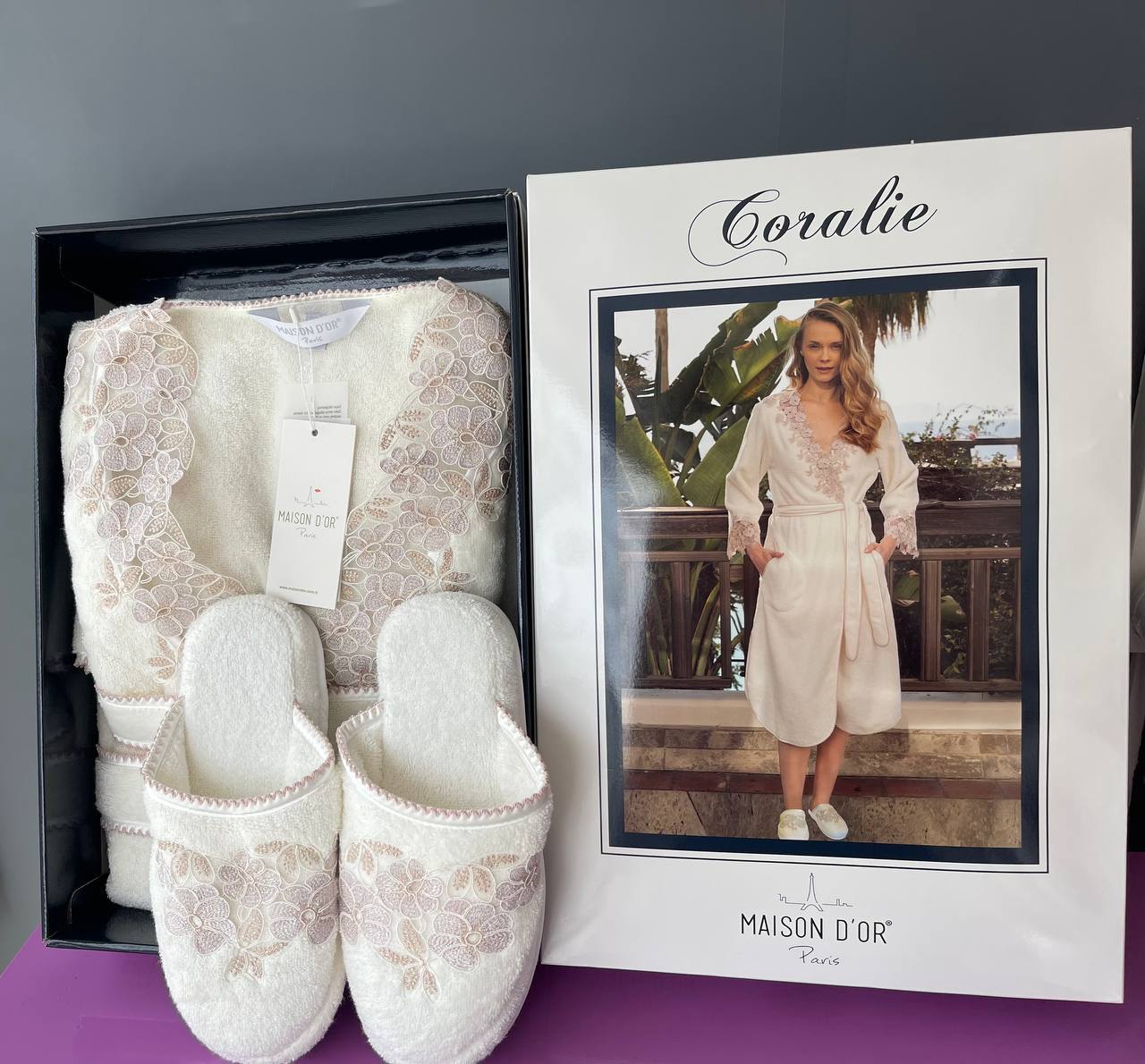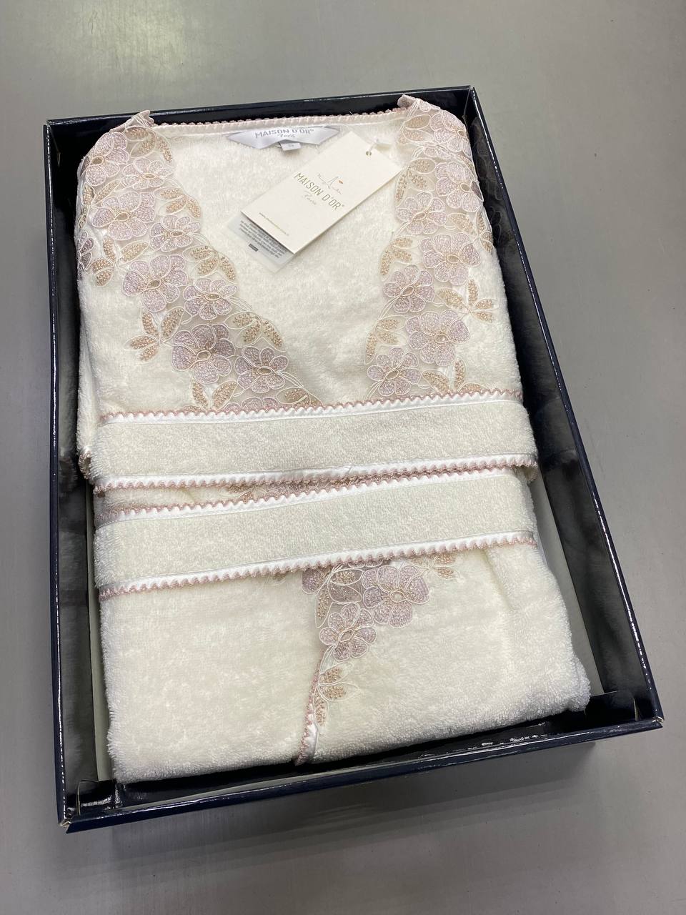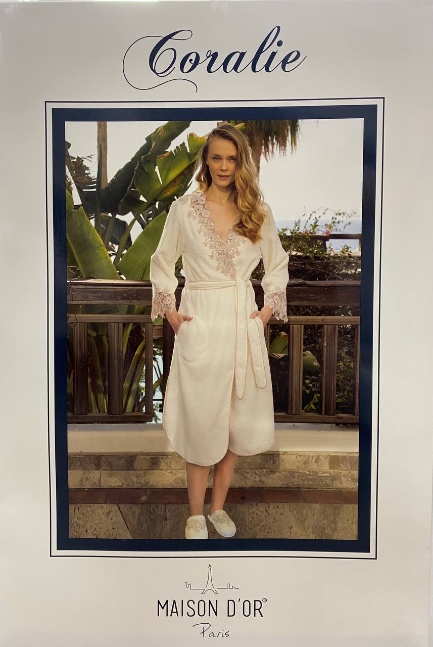 Отзывы о Халат женский махровый с тапочками Maison D'or "CORALIE" (кремовый/бежевый)