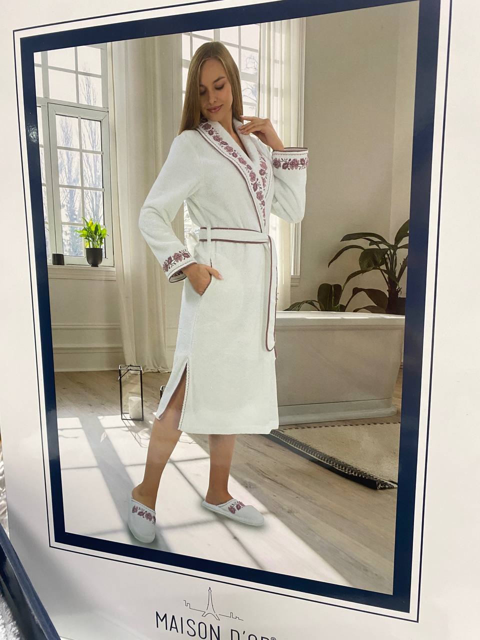 Отзывы о Халат женский махровый с вышивкой Maison D'or "ROSANNA" (белый/антрацит)