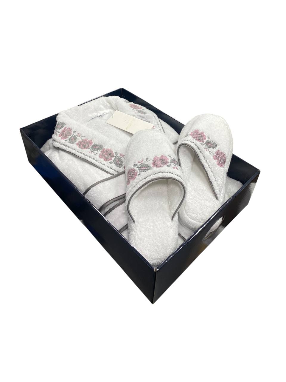 Отзывы о Халат женский махровый с вышивкой Maison D'or "ROSANNA" (белый/серый)
