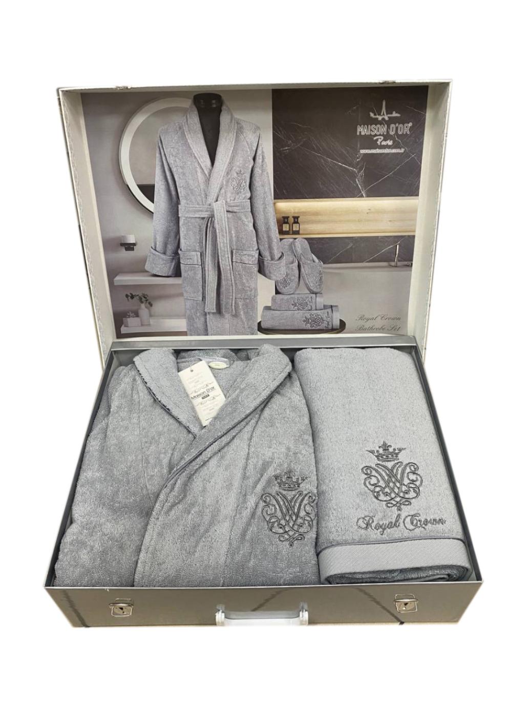Комплект Maison D'or "ROYAL" (Халат XL(50)-XXL(52)+Полотенца 50х100-85х150), серый