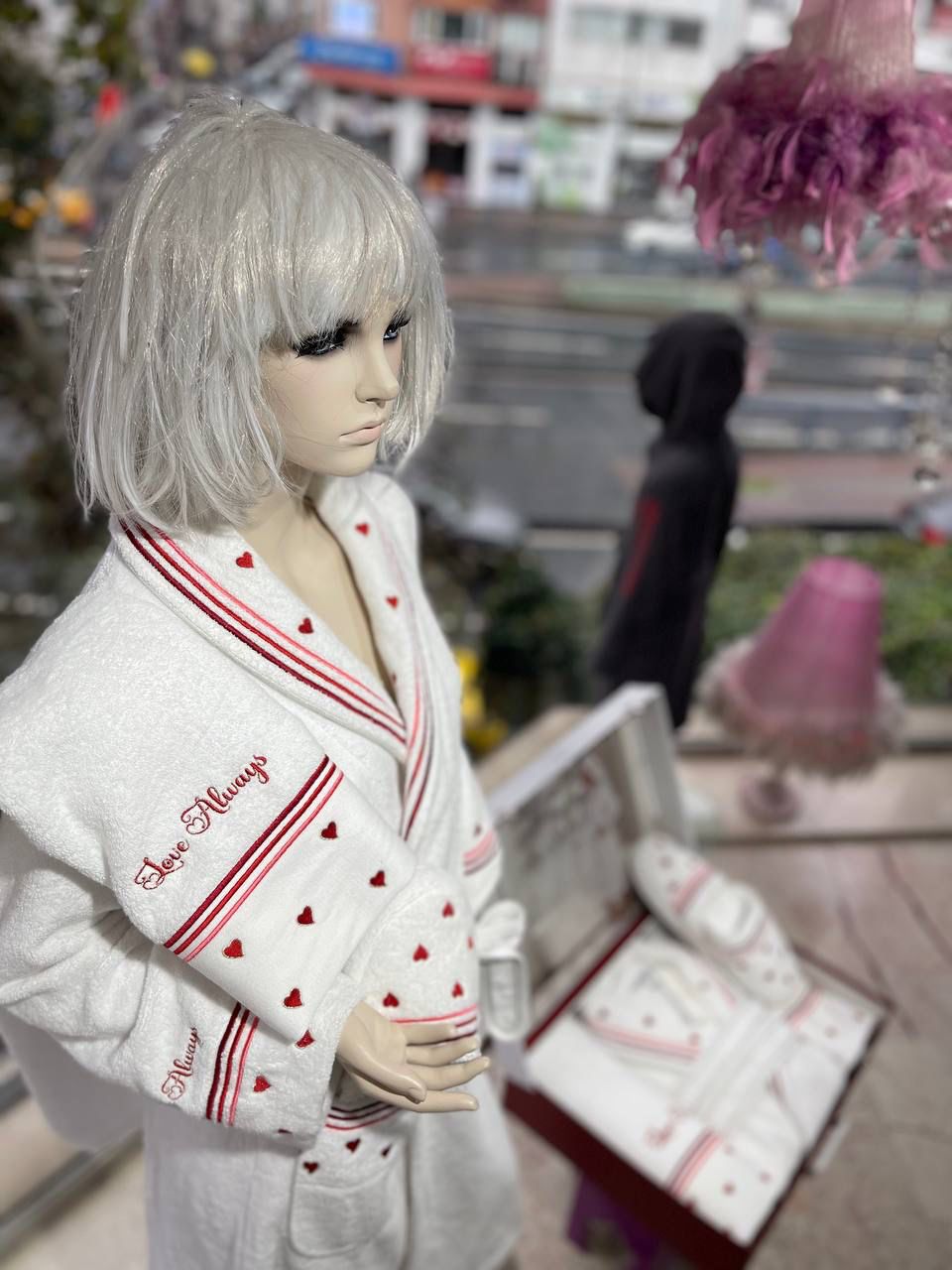 При пошиве женского комплекта (халат, полотенца, тапочки) серии "LOVE ALWAYS" используется махровая ткань на хлопковой основе, что обеспечивает изделию экологичность, гипоаллергенность, оптимальное сочетание мягкости и прочности, гигроскопичности и воздухопроницаемости.