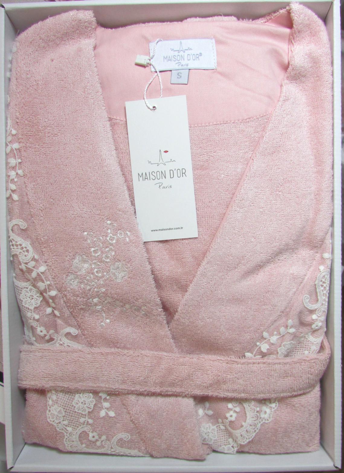 Отзывы о Халат женский махровый с кружевом Maison D'or "NERIA" (пыльная роза)