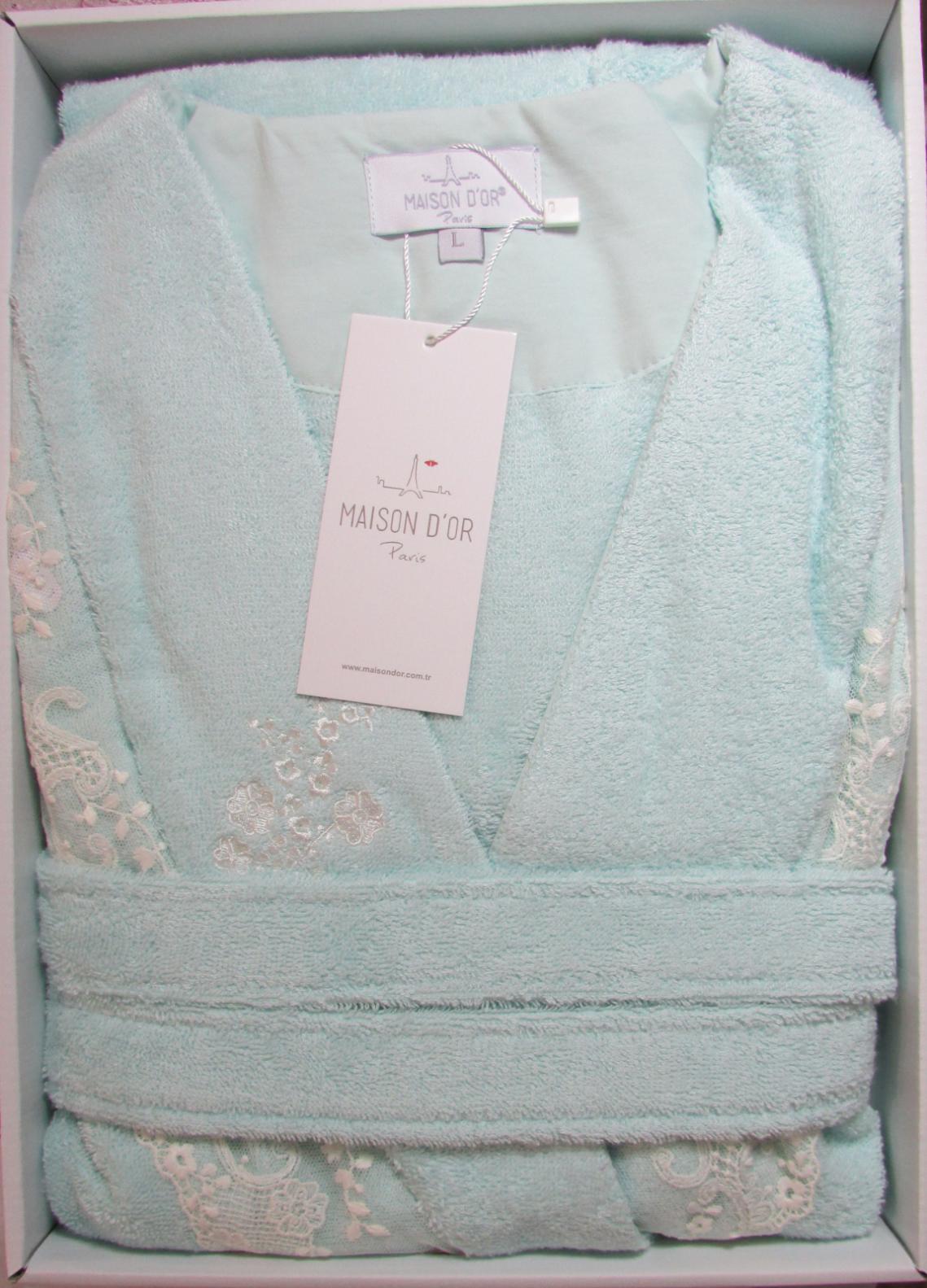 Отзывы о Халат женский махровый с кружевом Maison D'or "NERIA" (бирюзовый)